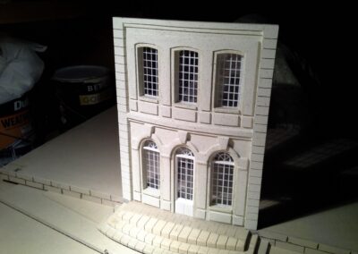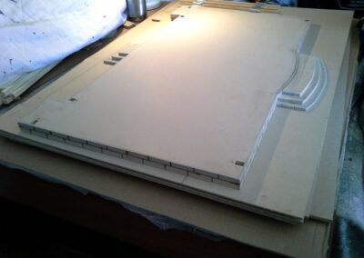 Most of the model is made from 3mm MDF, with some intricate details that include steps and curves.